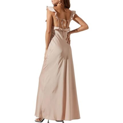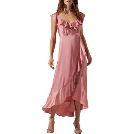ASTR The Label Women’s Satin Ruffled Maxi Wrap Dress with Deep V-Neck