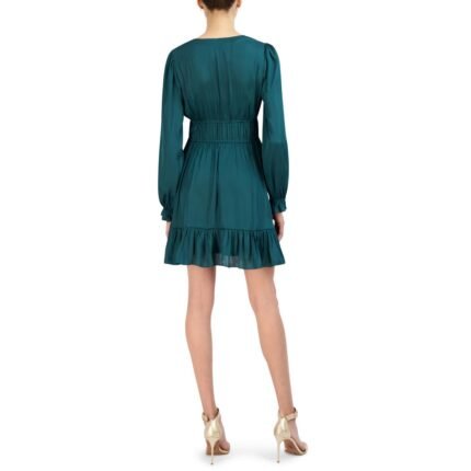 BCBG Max Azria Women’s Ruffled Bishop Sleeve Mini Dress with Deep V-Neck