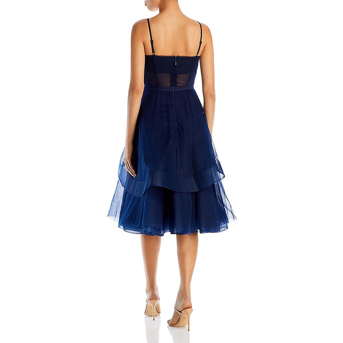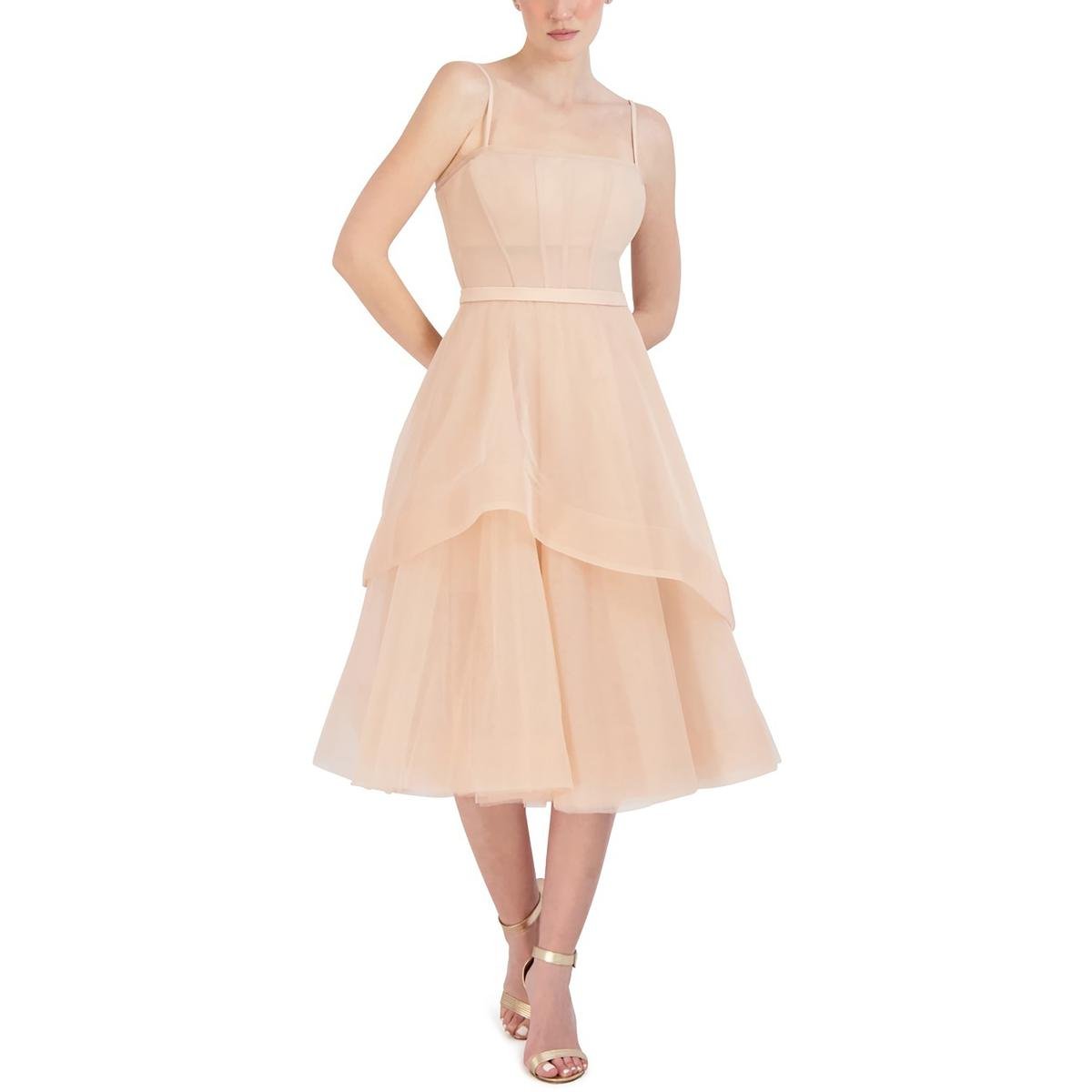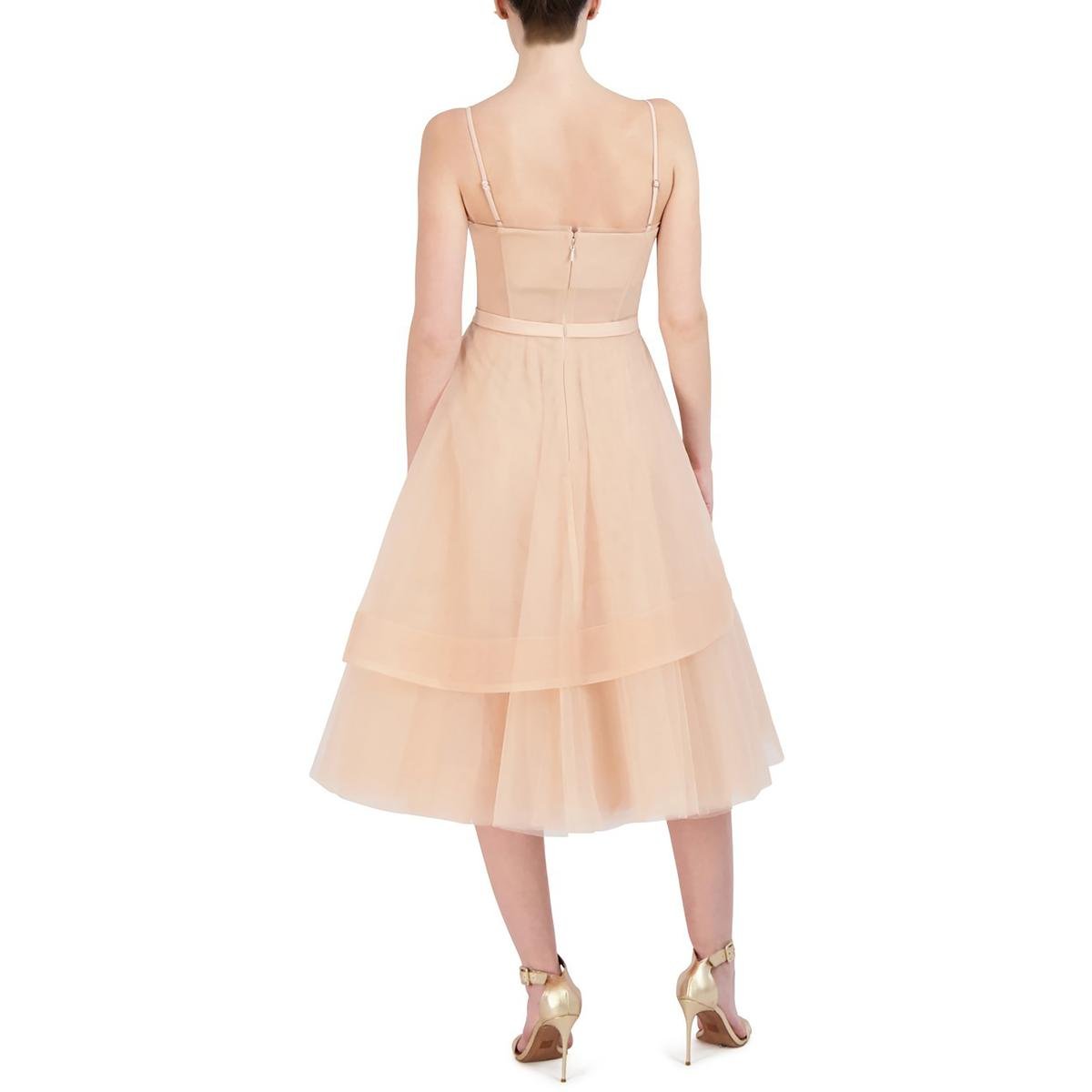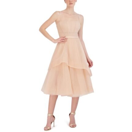 BCBGMAXAZRIA Women’s Tulle Tiered Sleeveless Midi Dress with Corset Bodice