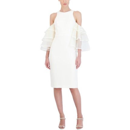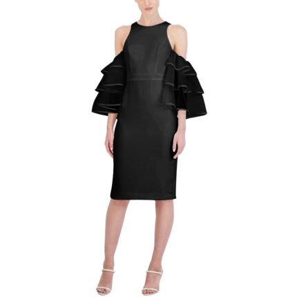 BCBGMAXAZRIA Women’s Ruffled Cold Shoulder Knee Length Cocktail Dress