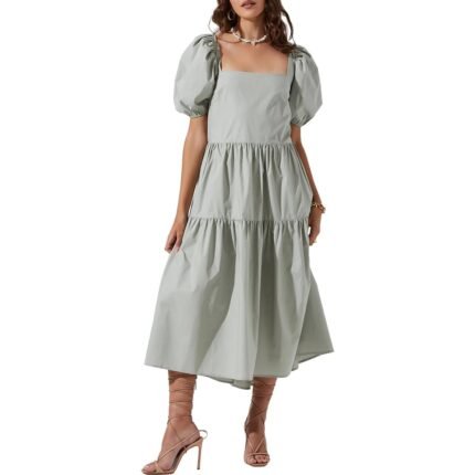 ASTR The Label Ilana Women’s Cotton Ruffled Puff Sleeve Midi Peasant Dress