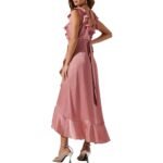 ASTR The Label Women’s Satin Ruffled Maxi Wrap Dress with Deep V-Neck